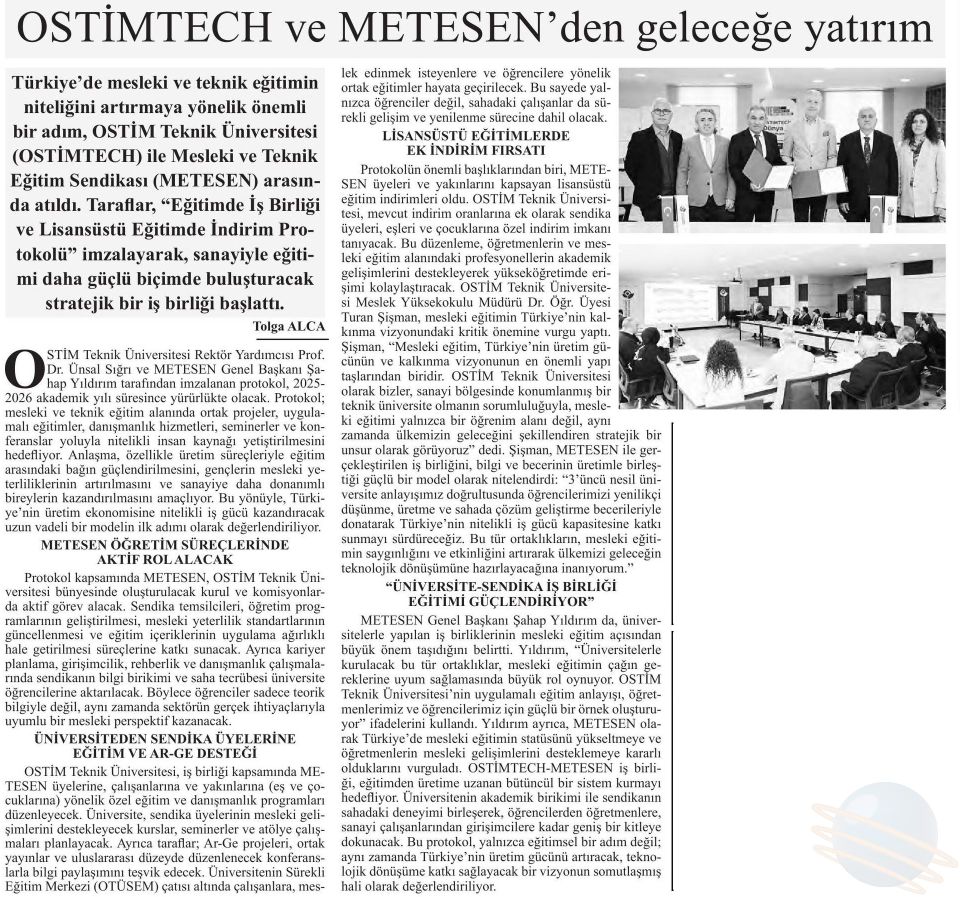 OSTİMTECH VE METESEN’DEN GELECEĞE YATIRIM | Basın Tanimtim Daire Başkanlığı